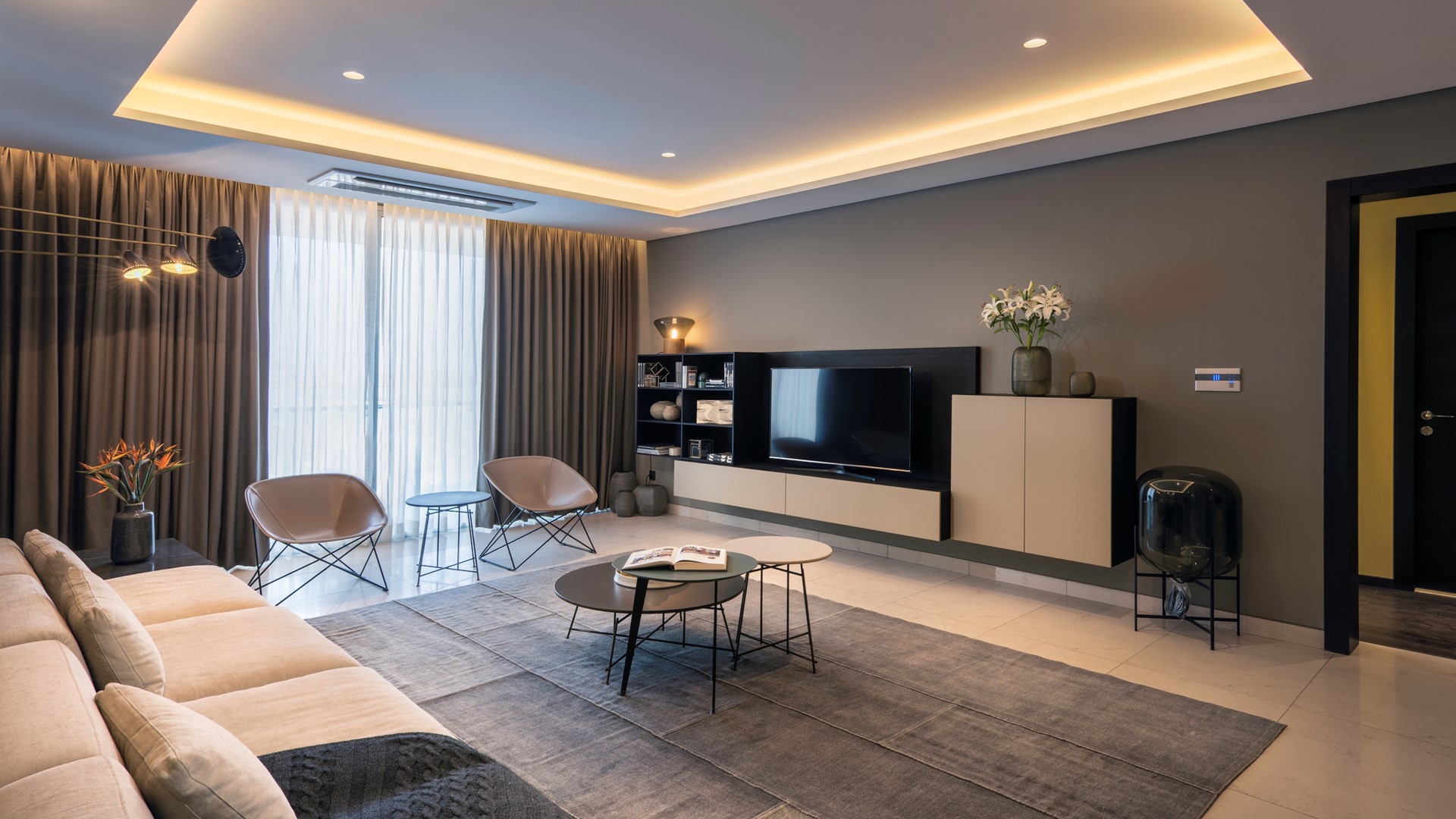 Panchshil also believes in delivering a highly finished product to its residents ensuring that every apartment is ready to live in from day one. The Panchshil Towers living rooms comes with a false ceiling and concealed lighting. While exterior viewing decks are finished with strip tiles.
