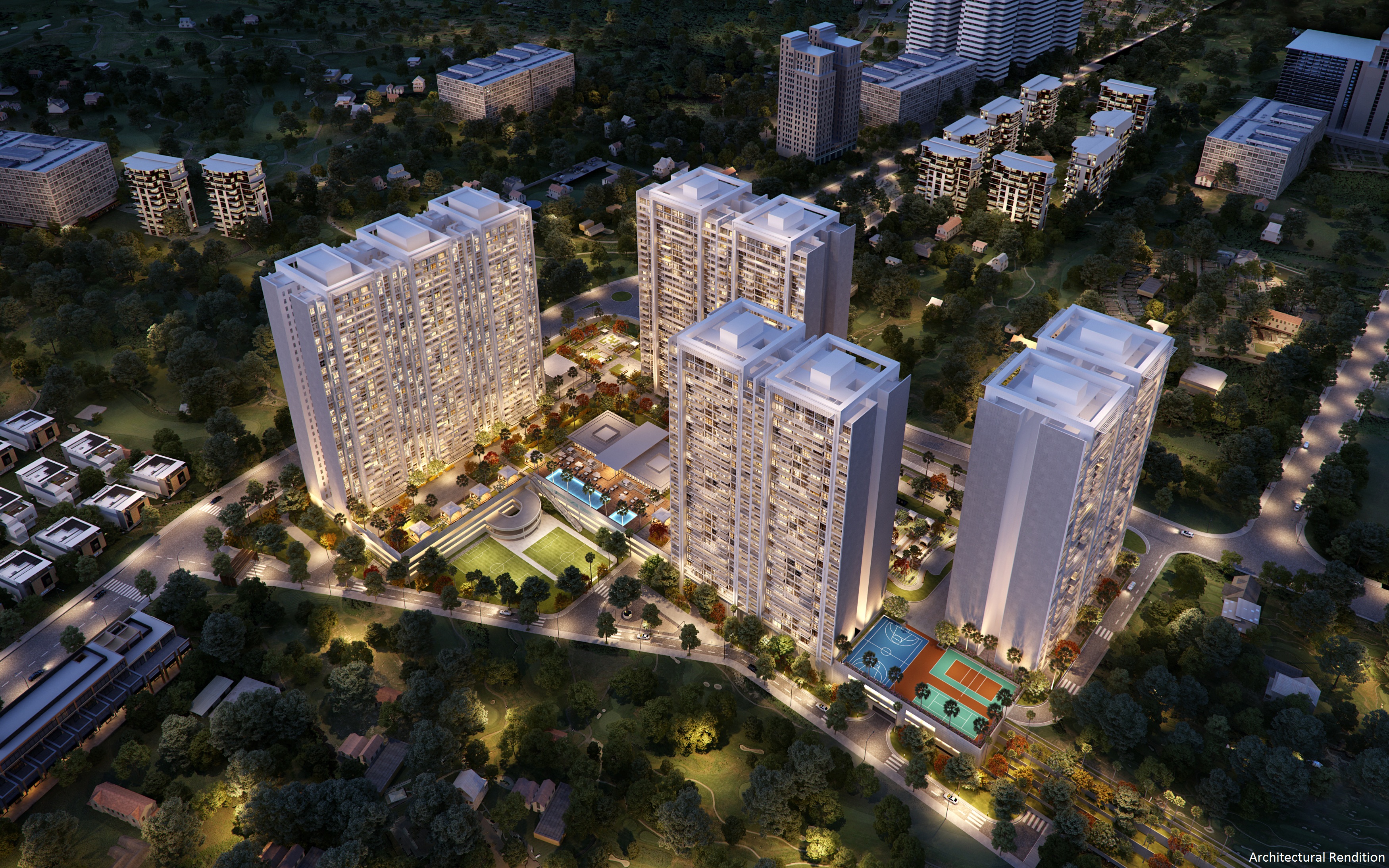 The project has over 20 key lifestyle amenities include an expansive clubhouse with lawn, pool, gym, a gourmet café, restaurant, multi-sport courts, squash courts, jogging track, cricket/football ground, elder & teen gardens and much more.