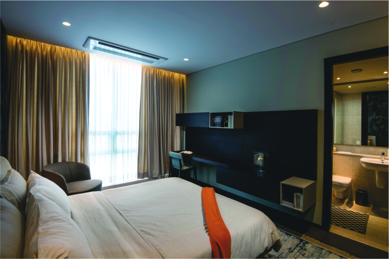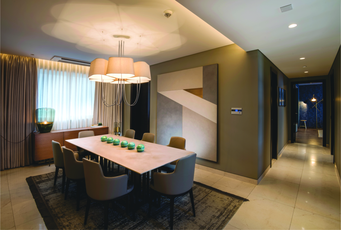 The use of technology continues within the apartments with a five-mode mood-lighting system. Instead of bricks and mortar, all apartments have dry-walls with superior imported materials and also free-up usable carpet areas.