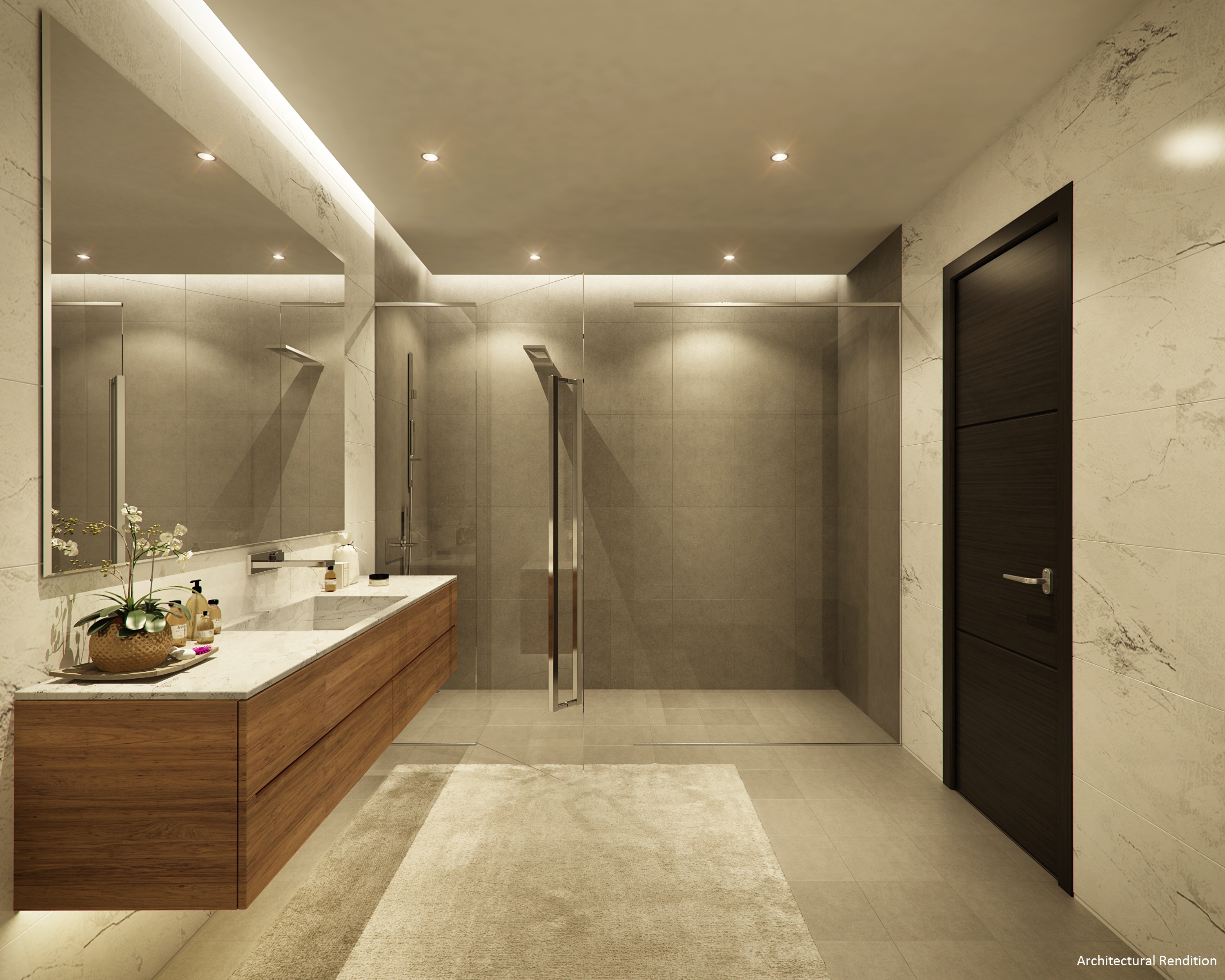 A perfect blend of beauty and functionality, the bathrooms come equipped with an imported washstand, mirror and shower enclosures that are among the finest in quality.